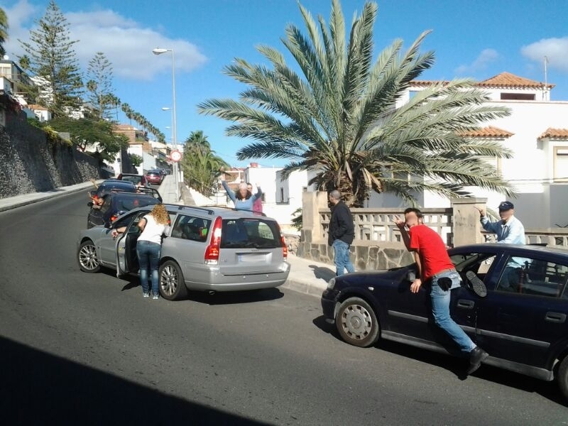 Fue esa mañana cuando se produjo un suceso prácticamente inédito en la infructuosa historia de las asambleas públicas y populares que se han sucedido con el tiempo en esta isla: la resolución de una Asamblea dejaba de ser un brindis al sol y se llevaba a la práctica. No eran las 12 del mediodía cuando se congregó y constituyó algo que tampoco tenía antecedentes en la historia de la lucha social de la isla: una improvisada “caravana de ocupación”. El espectáculo de 5 vehículos cargados de personas, tan comprometidas y tan distintas, dispuestas a liberar un inmueble, era algo difícil de explicar. La propia familia afectada, militantes anarquistas de la FAGC, antiguos miembros del 15-M, el sector más comprometido de “Stop Desahucios”, díscolos cristianos de base y gente sin otra ideología que el trabajo y la solidaridad, todos juntos con el objetivo de ejecutar un acto de Acción Directa y tomar un techo sin más prerrogativa que la de carecer de él.