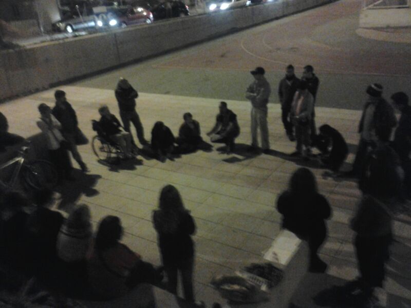 El sábado 12 fue un día intenso, y para los más allegados, también complicado. La esperada Asamblea de Inquilinos y Desahuciados (expulsada de la Plazoleta Upsala por monstruosas maquinarias de obra) se celebraba a latidos de compromiso y abnegación, pues quienes la organizaban se sentían obligados a no dejarse arrastrar por su preocupación y a tragarse el nudo formado en sus gargantas por la ausencia de dos compañeros que pocas horas antes habían sido detenidos (