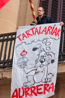 En un momento en el que el cuestionamiento del TAV es más que notable, desde el poder pretenden acallar a la oposición al TAV a golpe de multas y de juicios. Si no, no se entiende cómo se puede sancionar con semejante cantidad económica (en total casi dos millones y medio de las antiguas pesetas) a 33 personas por el mero hecho de observar una protesta. Pero no acaba ahí la cosa, sino que en el mes de setiembre recibimos 2 multas más, por un total de 300€, en el contexto de la marcha de bicis contra el TAV del verano; y hoy mismo nos hemos enterado de que dos personas del grupo de apoyo a los tartalaris, han sido sancionadas con 100€ cada una de ellas por dar una rueda de prensa en la calle en la que se denunciaba la multa de 14400€ impuesta por la Audiencia Nacional a uno de los tartalaris para evitar su ingreso en prisión. Precisamente en solidaridad con el tartalari multado y con las 33 personas sancionadas en la acción de Diputación, el 14 de noviembre organizaremos una jornada festiva reivindicativa en las calles del Casco Viejo de Iruñea, con actuaciones de música, degustación de tartas, comida popular, etc.etc.