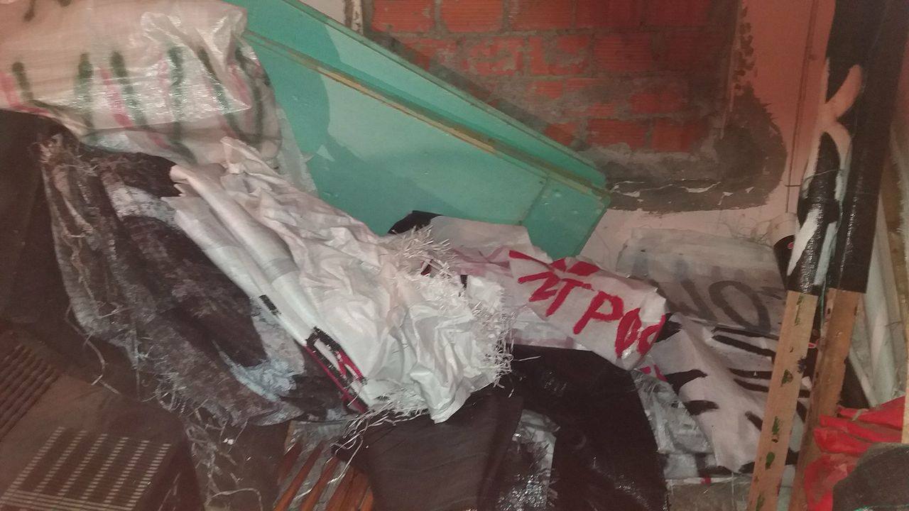 Según la información publicada en la página web de la okupa de Agrinio, los maderos buscaron minuciosamente la parte interior del edificio, abrieron armarios y cajones, rompieron varias puertas, trataron de provocar un cortocircuito para inutilizar varios aparatos eléctricos, destruyeron varios inmobiliarios, se llevaron tres banderas, provocaron daños a varios aparatos de grabación y reproducción de imágenes y sonido, soltaron los dos perros que vivían dentro del edificio de la okupa, y se llevaron 600 euros (no llegaron al sitio en que estaban escondidos otros 45 euros).