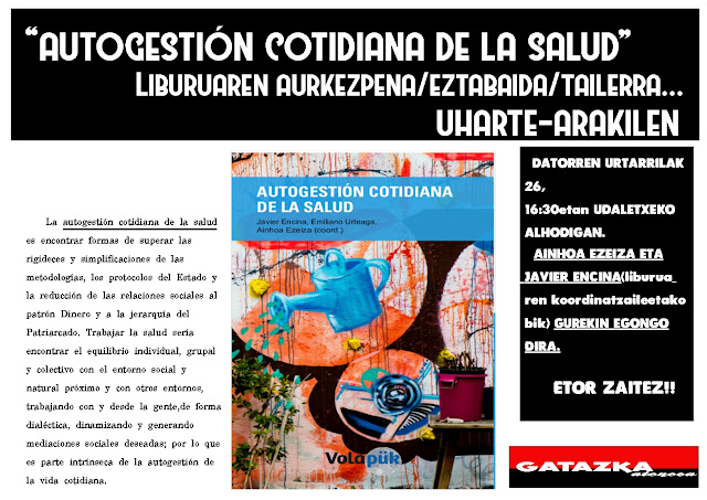 Es un libro colectivo que recoge diversos pensares/sentires/haceres en torno a la salud y vida cotidiana, con el que nos gustaría plantear un debate que nos ayude a seguir construyendo colectivamente formas de vida horizontales, con ayuda mutua...
