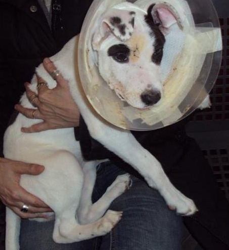 Tras los primeros momentos de desconcierto, carreras, nervios y tensión. El servicio veterinario que atiende a Bianka -nombre que deciden ponerle- diagnostica que tiene la mandíbula destrozada seguramente por que ha sido usada como sparring en vergonzosas peleas de perros.