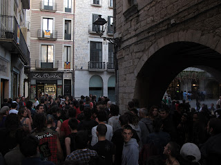La concentració de suport convocada a les set de la tarda al punt de trobada de la rambla va aplegar unes 250 persones que van anar en manifestació fins els jutjats de Girona. Un cordó policial de mossos d'esquadra impedia arribar davant de l'edifici judicial i van optar per llegir el relat del judici del matí en aquest punt. La marxa va reprendre el camí altre cop cap al centre de la ciutat fins arribar a la plaça del Vi, on es volia penjar una pancarta al balcó de l'Ajuntament. La policia municipal tampoc va permetre realitzar l'acció. Aleshores la manifestació va enfilar cap al centre social i finalitzar així la jornada amb un sopar col·lectiu i música en directe.