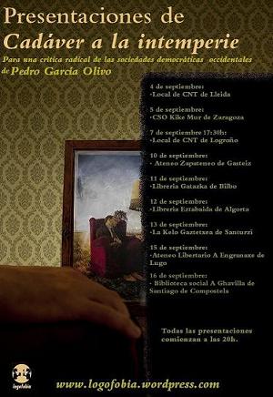Comienzan en el Zapateneo de Gasteiz las presentaciones de "Cadáver a la intemperie", el nuevo libro de Pedro García Olivo editado por Logofobia por Euskal Herria y Galiza![]()