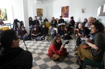 En un ambiente de turbulencias políticas que pide a gritos un cambio social, donde las paredes hablan de libertad e incluso se pueden ver “A” circuladas y mensajes políticos por doquier trascurrieron varios actos de calado político. Por un lado estaba el FSM, que encarna el posibilismo del capitalismo blando que vislumbra el interclasismo en un marco de relaciones supeditadas a la representatividad parlamentaria-laboral e institucional. En la otra vertiente tuvo lugar durante tres días y de forma alternativa nuestro modesto encuentro que consiguió aunar unos cincuenta asistentes pertenecientes a organizaciones del entorno libertario de Francia, Italia, España, Kurdistán, Bielorrusia, Argelia, y Túnez entre otros. El objetivo era fundamentalmente compartir experiencias internacionales para encontrar puntos de vista comunes que pongan la primera piedra de un posible intercambio de trabajo e impulsar de alguna forma los colectivos tunecinos en un momento crucial para el florecimiento del anarquismo.