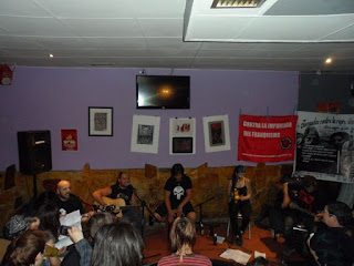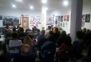El primer acto de estas jornadas fue la charla coloquio "La represión franquista en la provincia de Ávila", que impartió la escritora Mª del Mar González, autora de una infinidad de artículos sobre la represión, en el local de CGT abulense. La charla contó con una participación de entorno a las 70 personas y fueron muchas las intervenciones del público, o bien para contar experiencias familiares o bien para aportar datos a lxs ponentes, con lo cual fue tremendamente dinámica e instructiva para todxs lxs asistentxs. Señalar entre otras, las intervenciones en la misma, del ex-presidente de las cortes de Castilla y León, Carlos Sánchez-Reyes, autor del libro "Ávila: Cuando emigraban las cigüeñas (1935-1956)", la de un antiguo concejal del PCE en el ayuntamiento de Ávila, o la de algunx represaliadx perteneciente al colectivo La Comuna.Así mismo, se pudo visitar la exposición de ilustraciones de artistas abulenses sobre la represión de ayer y de hoy y como colofón final a las jornadas señalar la cena vegetariana con la que lxs organizadorxs deleitaron al personal asistente a las jornadas.