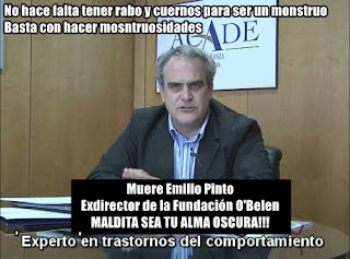 Emilio Pinto Rodríguez, tal vez tu familia te eche de menos, tal vez los clientes del ayuntamiento, los Amos de la Junta y todos aquellos a los que colocaste en esas infames casas de torturas que son los reformatorios de la Fundación O'Belen. El negocio de las Mazmorras. Qué mal negocio escogiste. Cubierto con una pátina de amabilidad se camuflaba el predador de niños entre los humanos, el licántropo, homo pueri lupus. Tu legado queda en pie para nuestra desgracia.