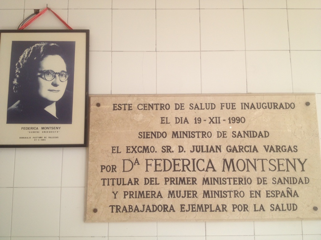 Por último, Federica Montseny, la indomable, se convierte en esta placa, situada en un centro de salud de Madrid, por una cabriola prestidigitadora en trabajadora ejemplar por la salud, sin más referentes que ayuden a situar a esa breve estancia (noviembre 1936- mayo 1937) de Montseny en el Gobierno Largo Caballero.