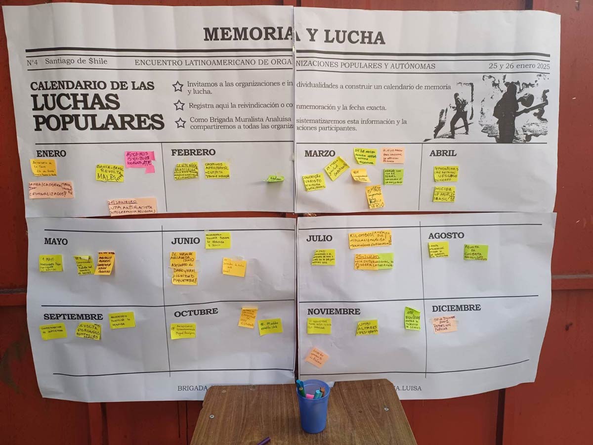 Calendario que muestra las diversas campañas y eventos importantes relacionados con las organizaciones de movimientos sociales que participan en ELAOPA.